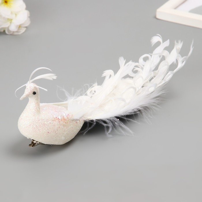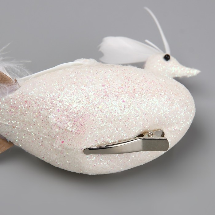 Пушистик на прищепке "Голубь с высоким хохолком и в блестках" белый 7х5х28 см