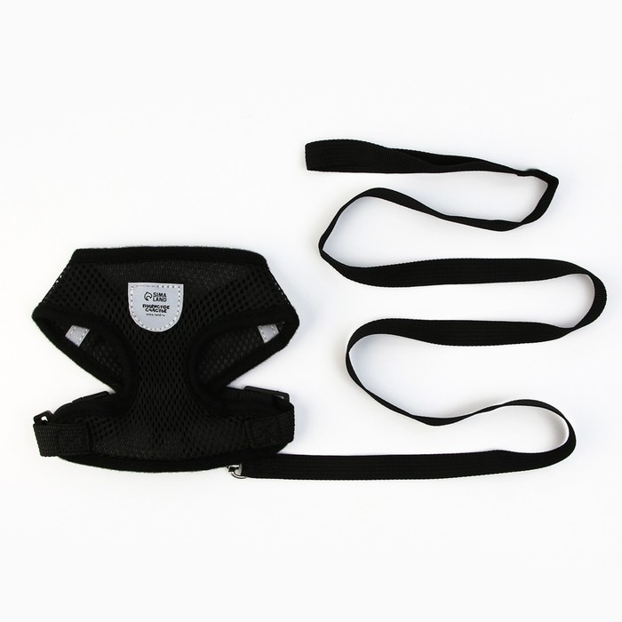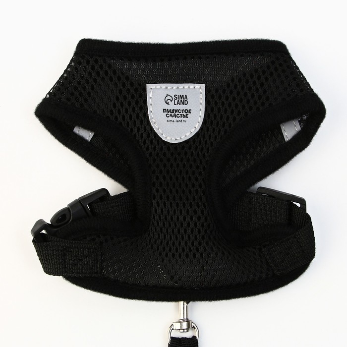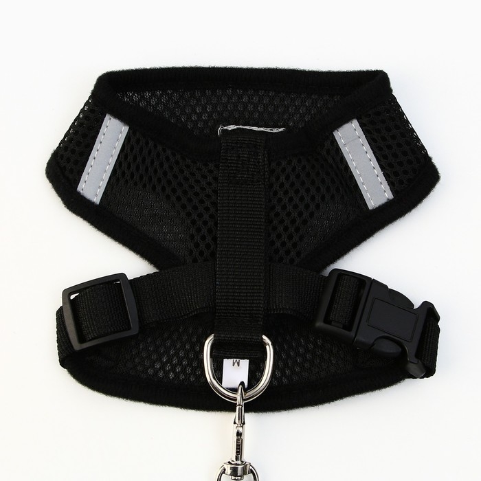 Шлейка дышащая с поводком и светоотражающей нашивкой, M, ОШ 33, ОГ 32-43, черная