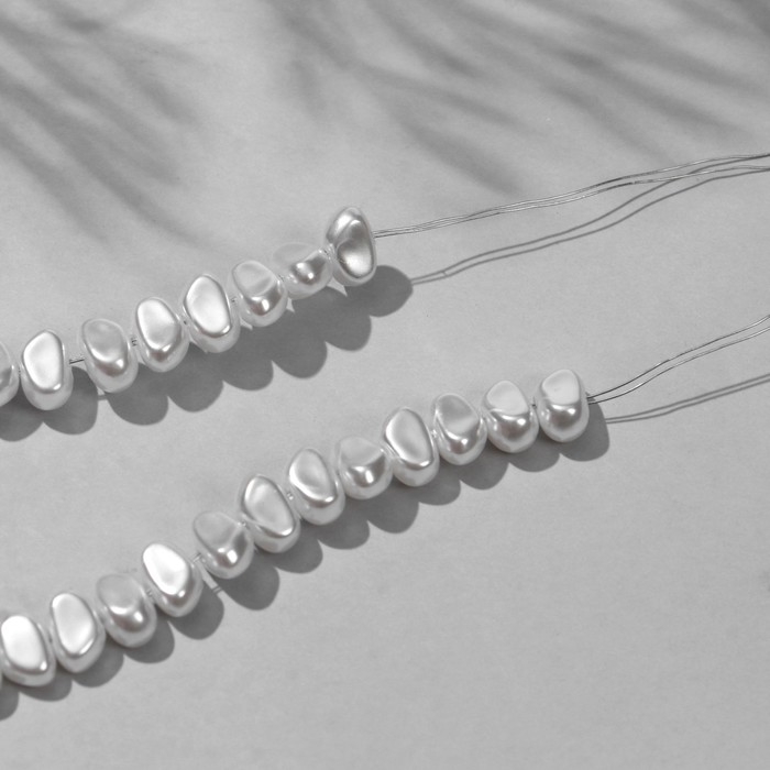Бусины пластиковые на нити «Жемчуг» 0,9×0,6×0,4 см, (набор 160 шт.), цвет белый