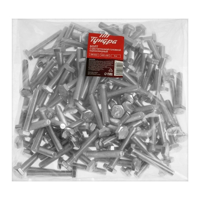 Болт ТУНДРА, оцинкованный, DIN 933, класс прочности 8.8, М10х60 мм, 1 кг