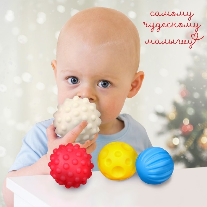 Мячики выполнены из приятного на ощупь материала, и малышам очень удобно держать их в руках.