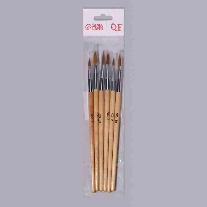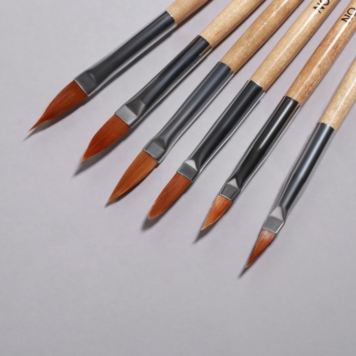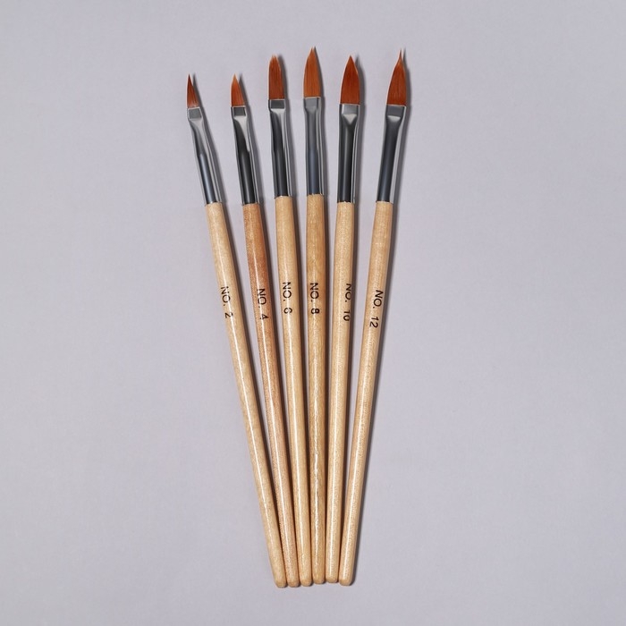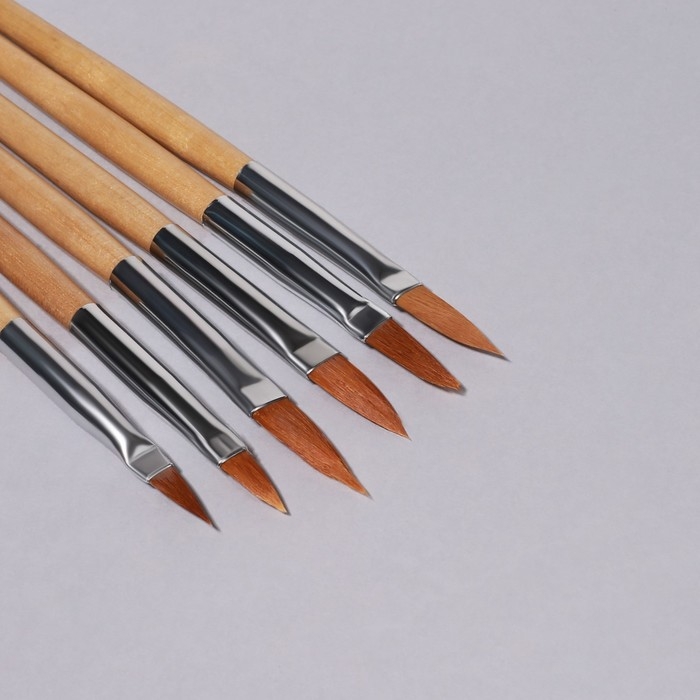 Набор кистей для наращивания и дизайна ногтей, форма лепесток, 6 шт, 19,5 см, цвет коричневый
