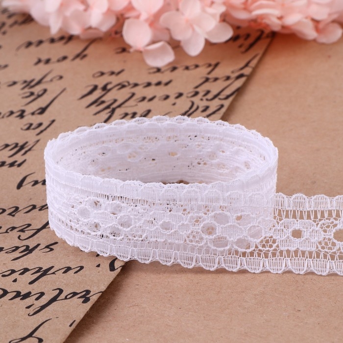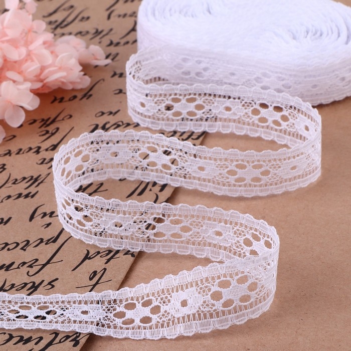Кружево капроновое, 22 мм × 10 ± 1 м, цвет белый