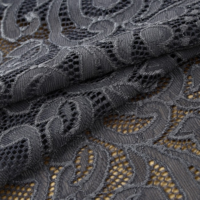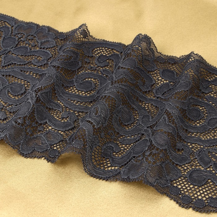 Кружевная эластичная ткань, 175 мм × 2,7 ± 0,5 м, цвет графитовый