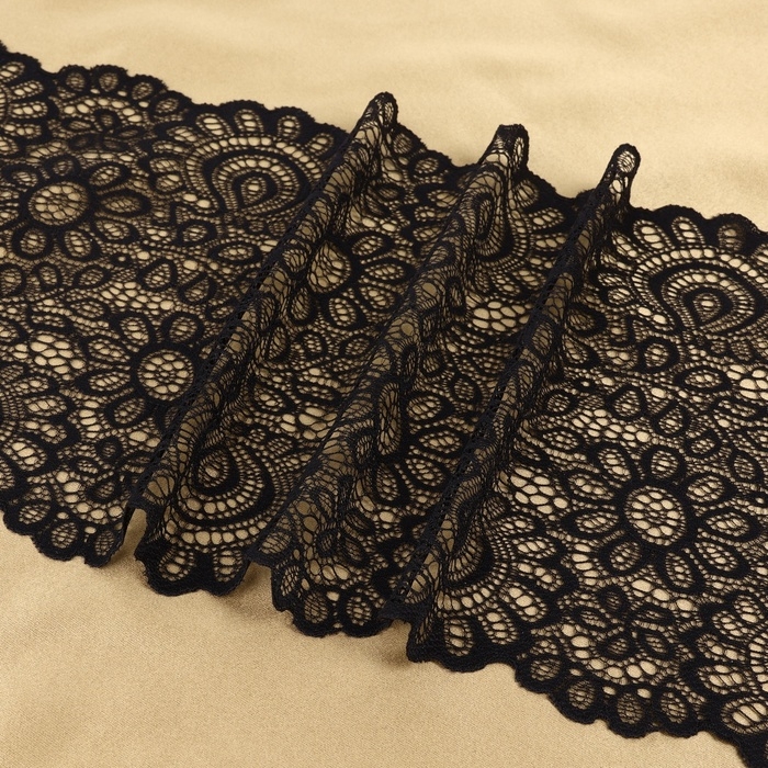 Кружевная эластичная ткань, 195 мм × 2,7 ± 0,5 м, цвет чёрный