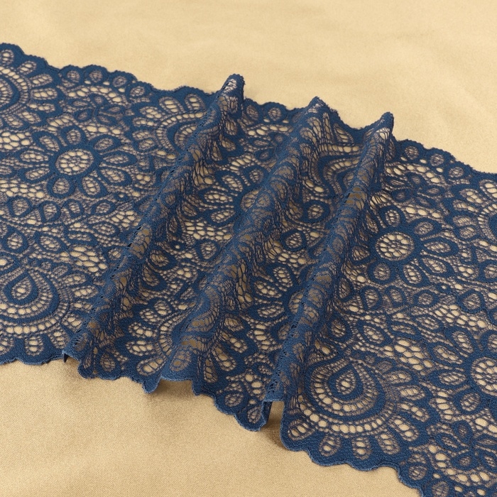Кружевная эластичная ткань, 190 мм × 2,7 ± 0,5 м, цвет синий