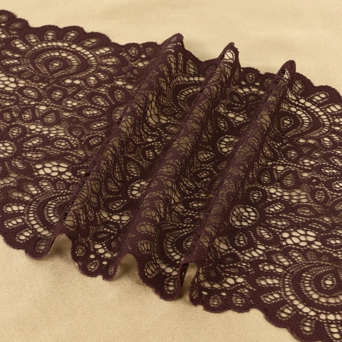 Кружевная эластичная ткань, 190 мм × 2,7 ± 0,5 м, цвет шоколадный