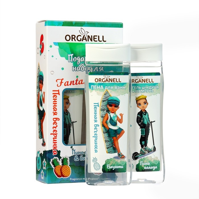 Набор детский ORGANELL "Пина колада и баунти": 2 в 1 гель для душа и шампунь, 250 мл + пена для ванн, 250 мл