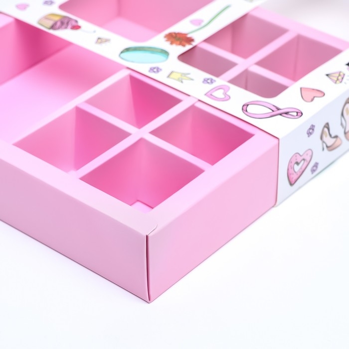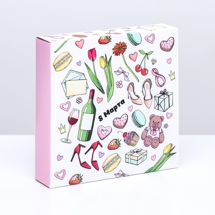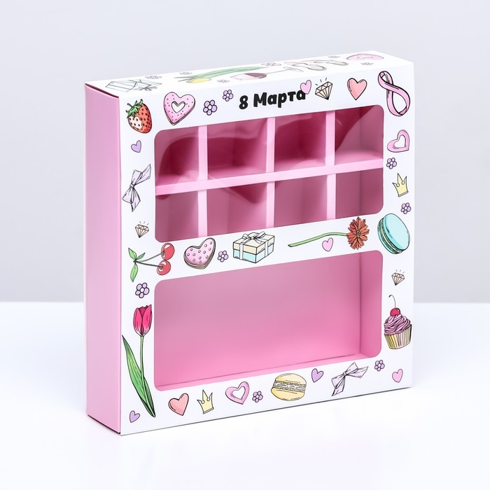 Коробка для 8 конфет + шоколад, с окном , " 8 марта" 17,7 х 17,8 х 3,8 см. Кондитерская упаковка