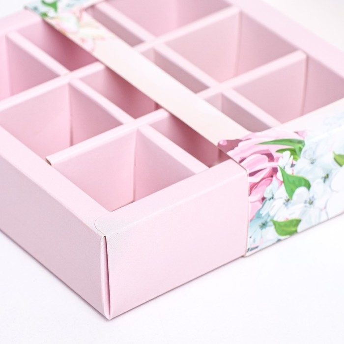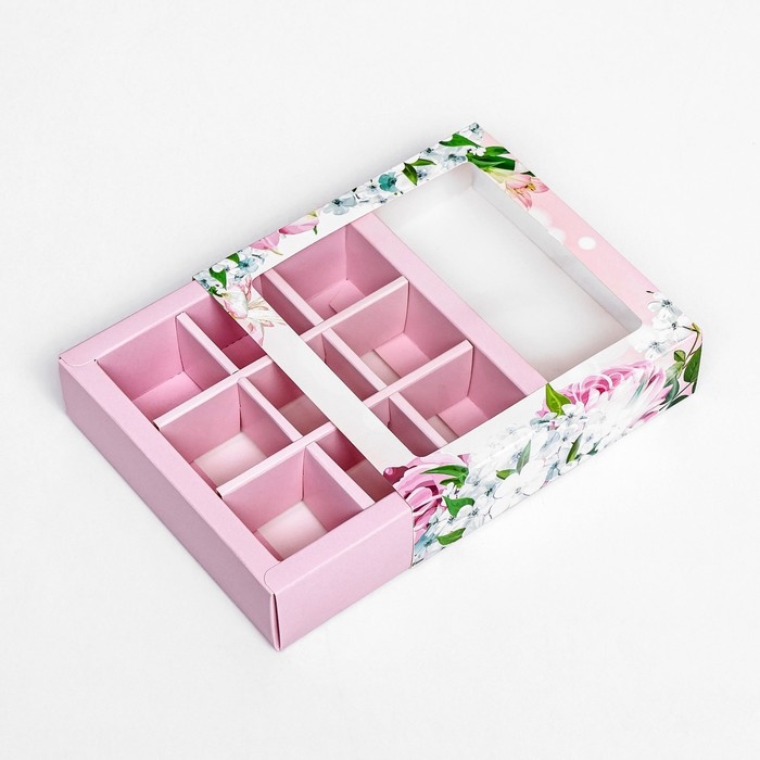 Коробка для 9 конфет, "Цветы" 13,8 х 13,8 х 3,8. Кондитерская упаковка