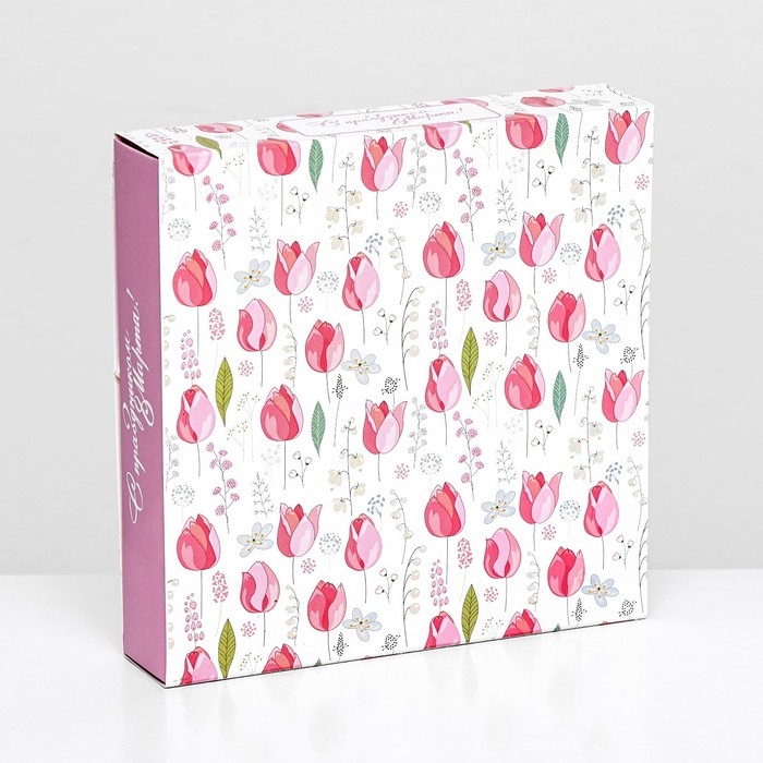 Коробка для 16 конфет , "Тюльпаны" 17,7 х 17,7 х 3,8 см. Кондитерская упаковка