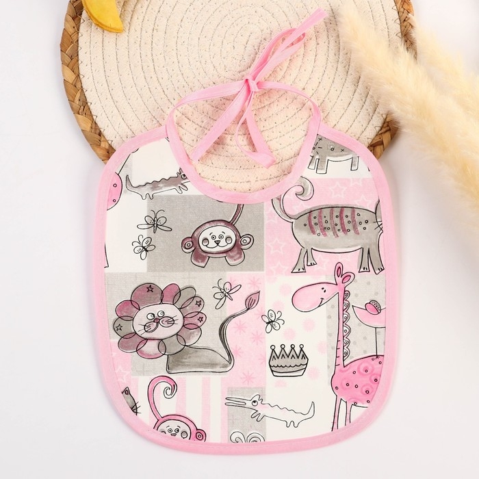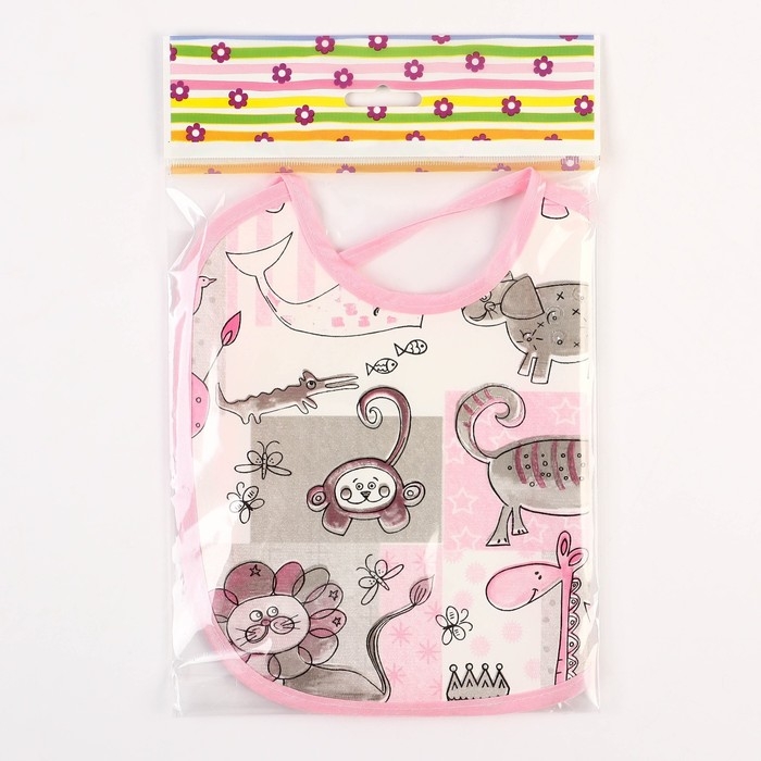 Нагрудник из нетканого полотна с ПВХ покрытием «Мультики», цвет розовый, р-р. 20х22см