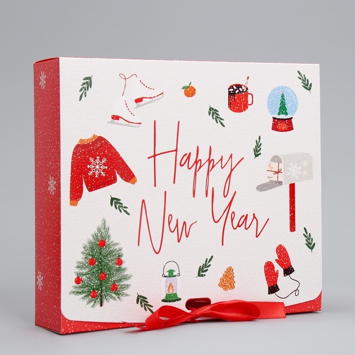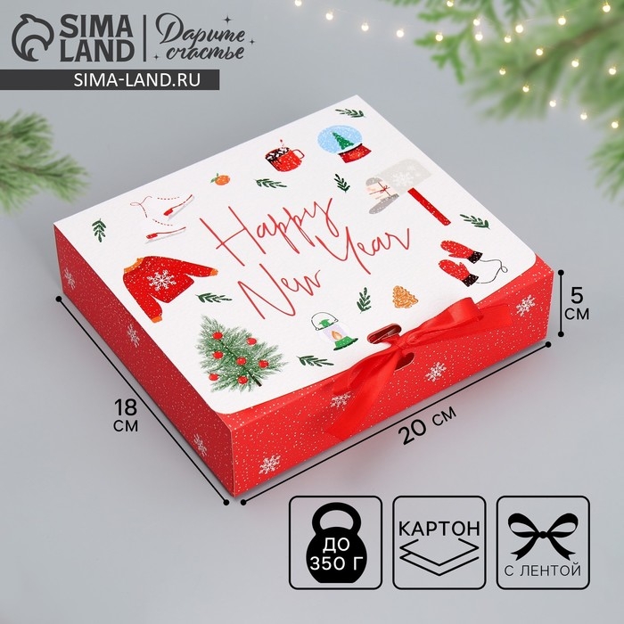Коробка подарочная новогодняя складная «Счастливого праздника», 20 х 18 х 5 см, Новый год