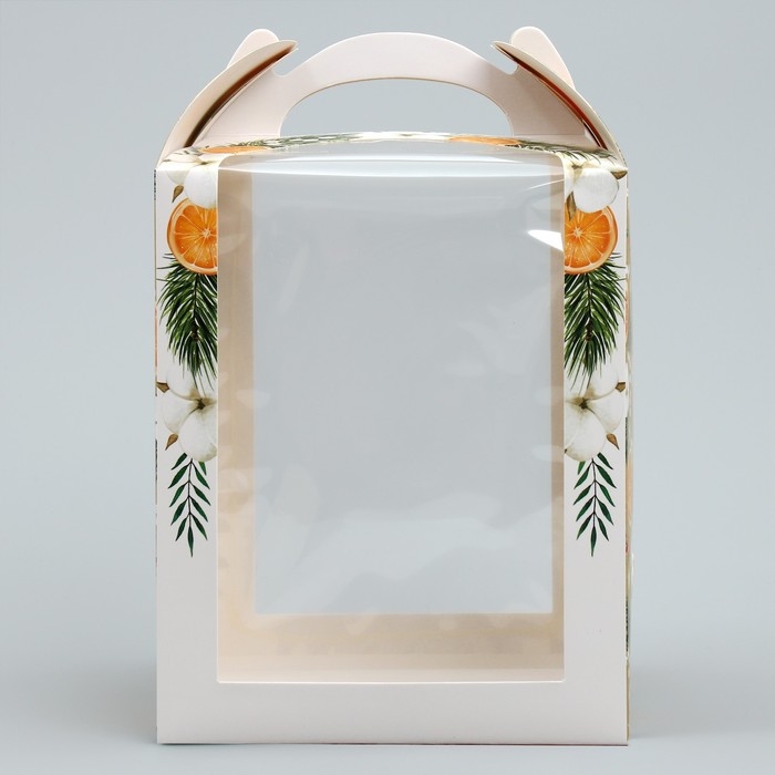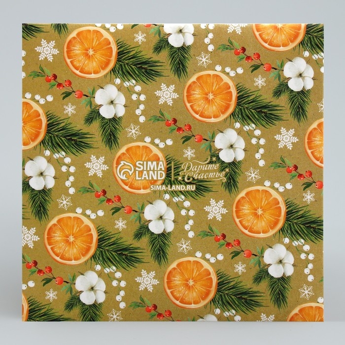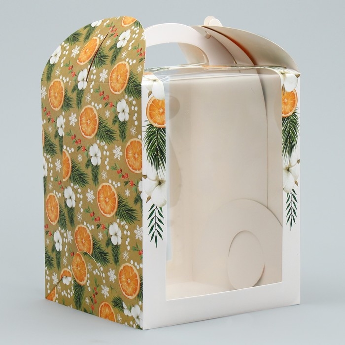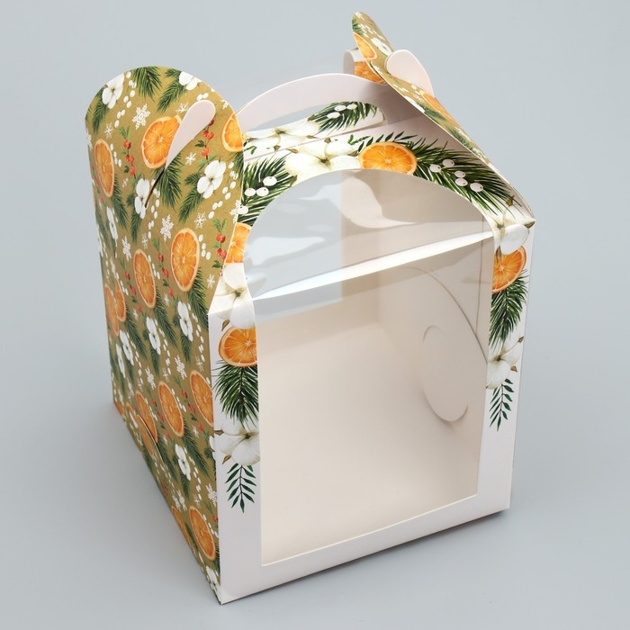 Складная коробка под маленький торт «Апельсины», 15 х 15 х 18 см, Новый год