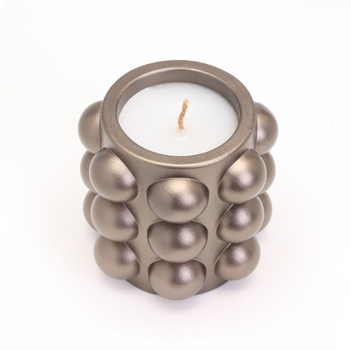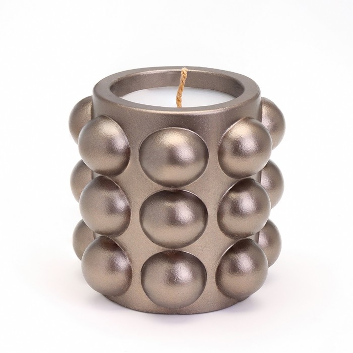 Свеча в подсвечнике из гипса с шарообразными гранями, 10х10см, серо-коричневый