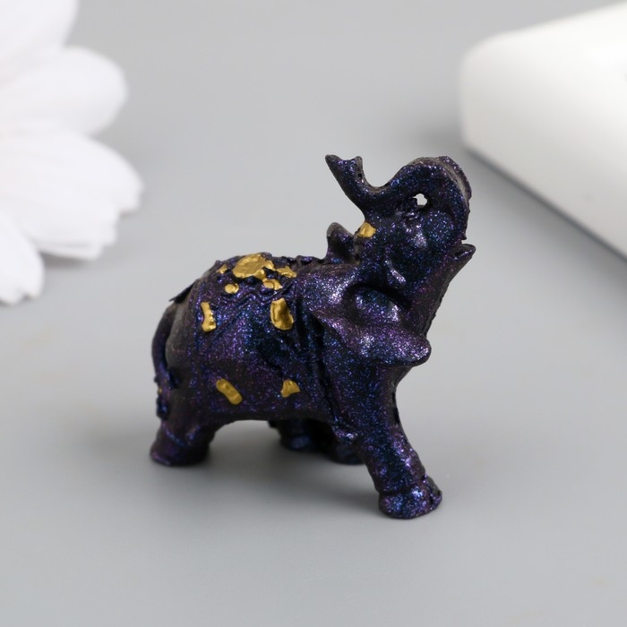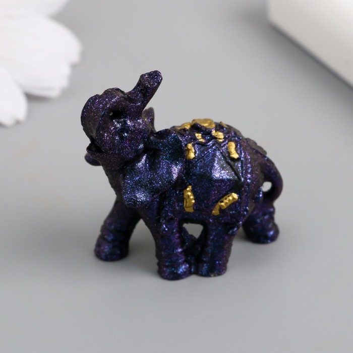 Сувенир полистоун "Сине-фиолетовый слон с попоной и золотом" 4х2х4 см