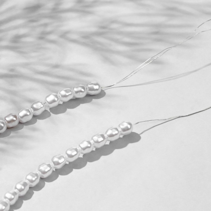 Бусины пластиковые на нити «Жемчуг» 0,7×0,6×0,6 см, (набор 150 шт.), цвет белый