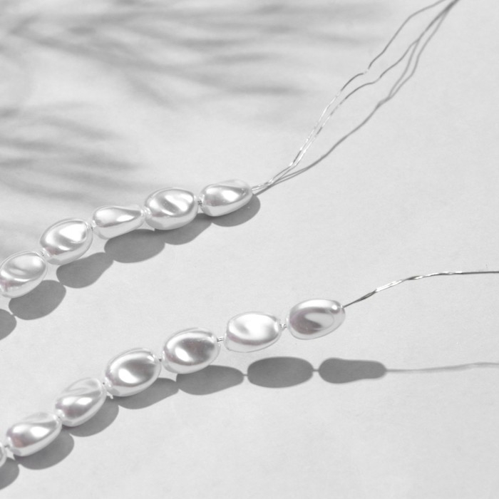 Бусины пластиковые на нити «Жемчуг» 8×6 мм, (набор 190 шт.), цвет белый