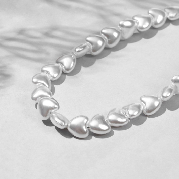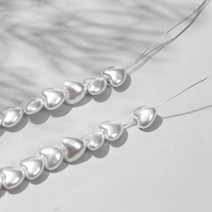 Бусины пластиковые на нити «Жемчуг» сердце 0,6×0,6×0,5 см, (набор 140 шт.), цвет белый