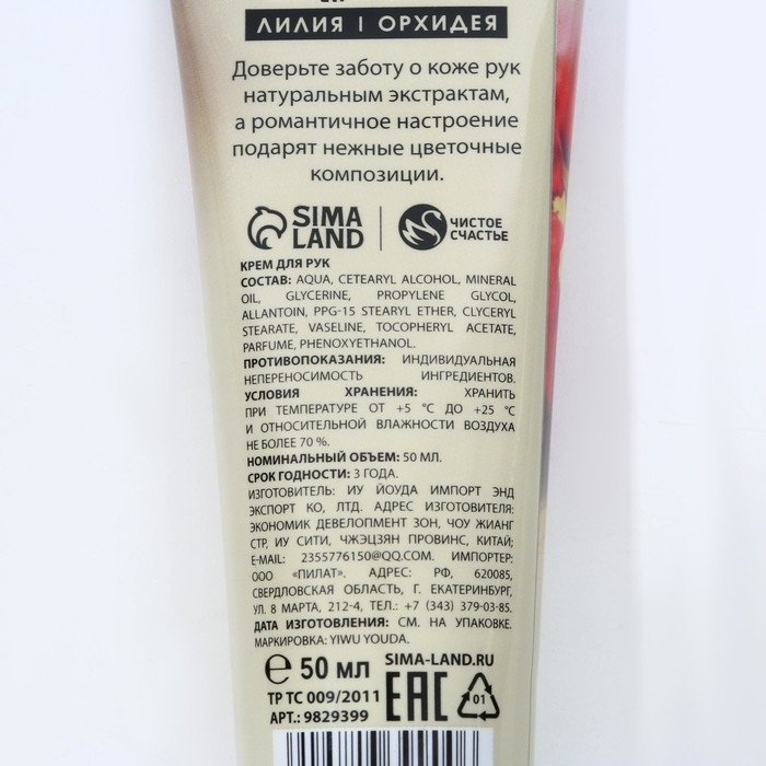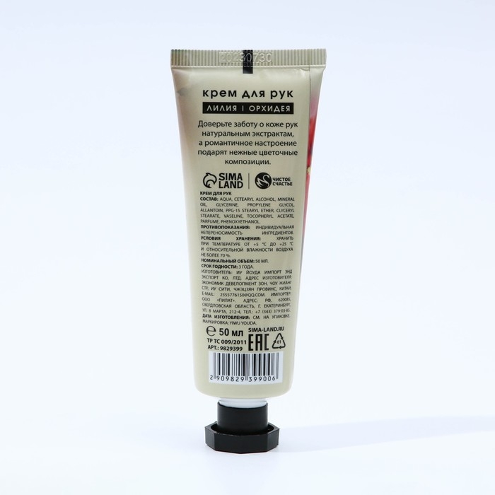 Крем для рук, 50 мл, аромат лилии и орхидеи, ЧИСТОЕ СЧАСТЬЕ