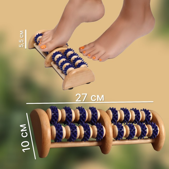 Массажёр «Барабаны», 4 ролика с шипами, деревянный, 26 × 10 × 5 см
