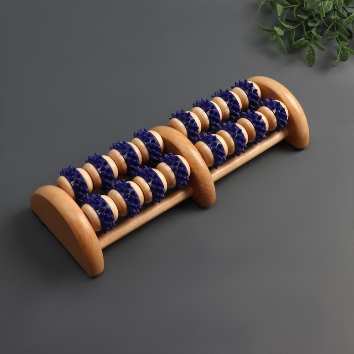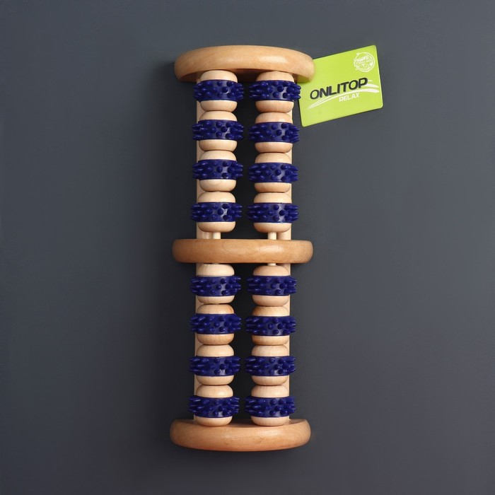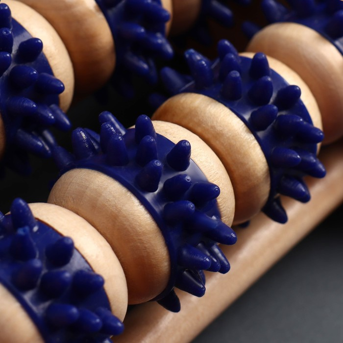 Массажёр деревянный, 16 колёс с шипами, цвет синий/бежевый