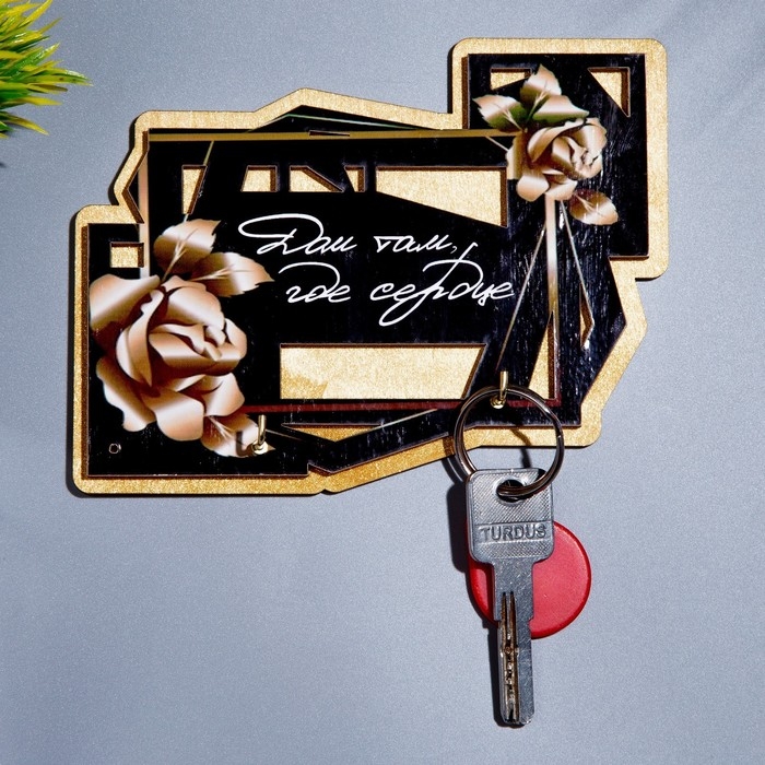 Ключница "Дом там, где сердце!" розы, 15х14х1 см