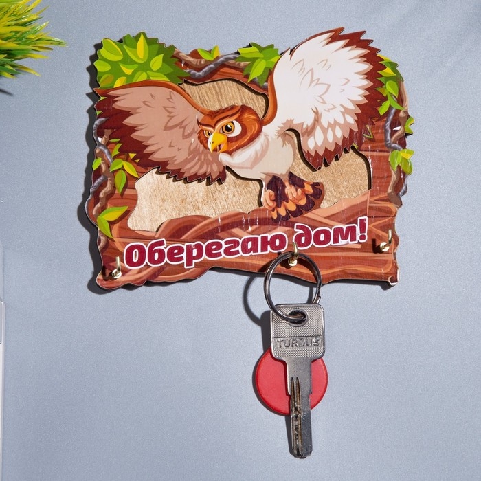 Ключница "Оберегаю дом!" сова, 15х14х1 см