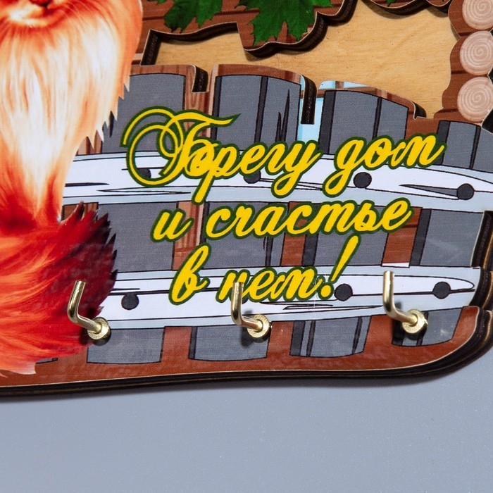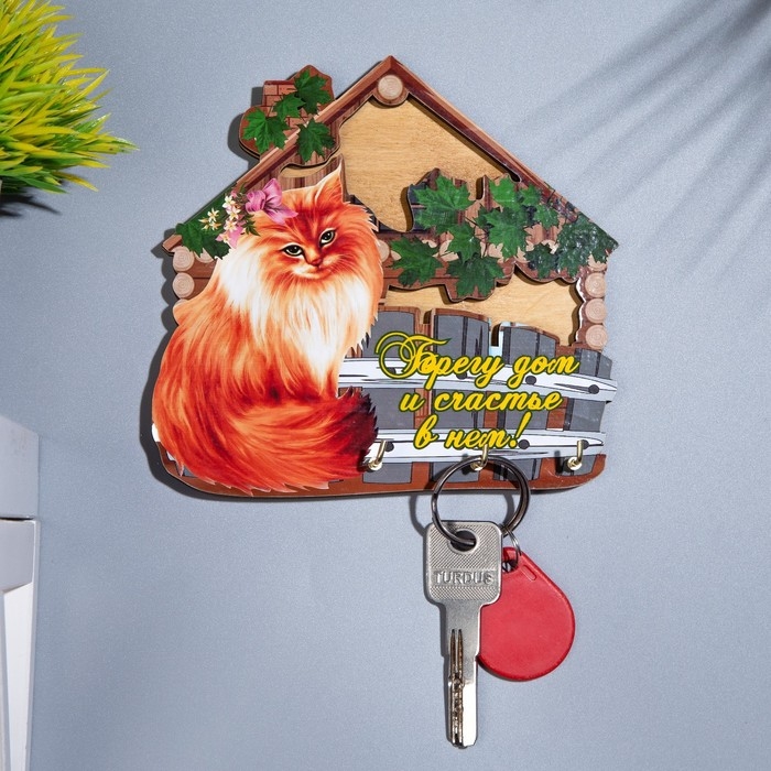 Ключница "Берегу дом и счастье в нем!" кошка, 15х14х1 см