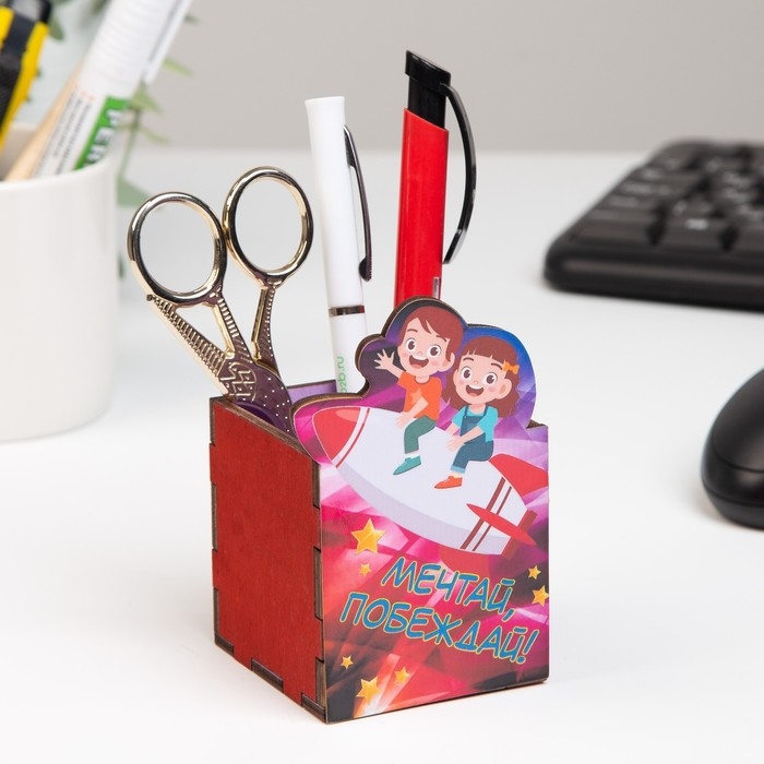 Карандашница "Мечтай, побеждай!" ракета, 6х6х10 см