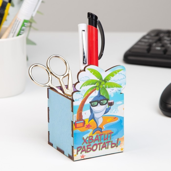 Карандашница "Хватит работать!" акула, 6х6х10 см