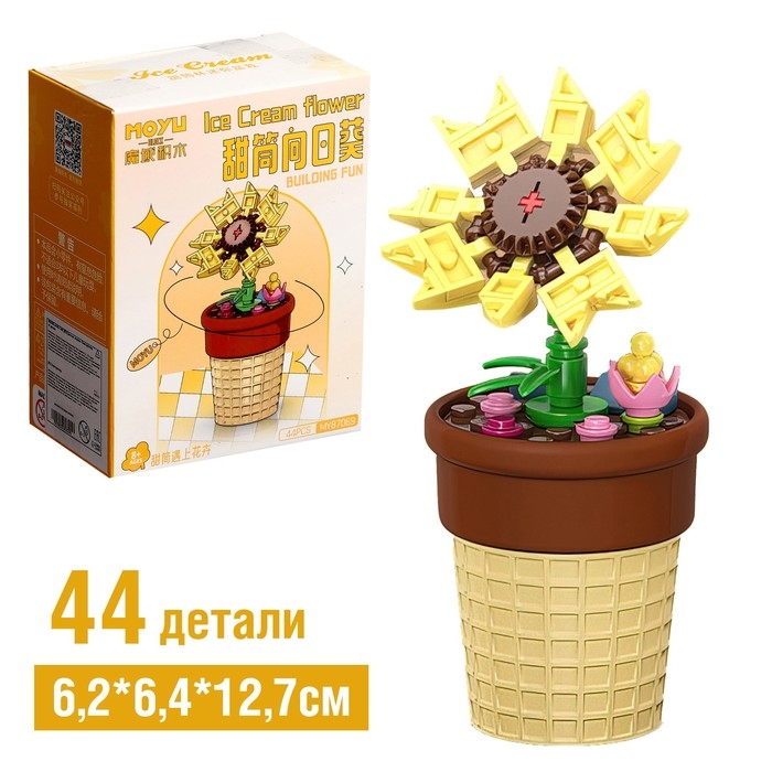 Конструктор Цветы «Счастливчик в горшочке», 44 детали