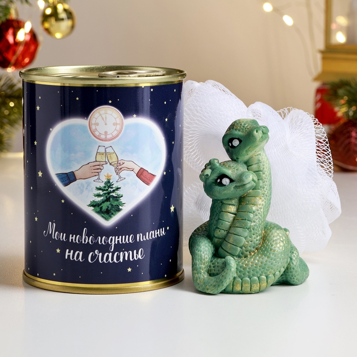 Набор в консервной банке "Новогодние планы на счастье" мыло + мочалка
