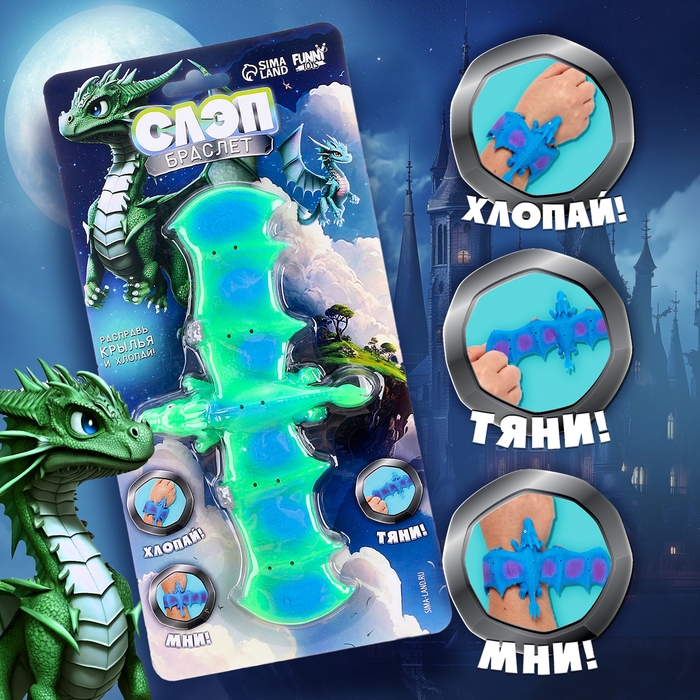 Слэп-браслет «Дракон» — это яркий аксессуар, который поможет ребёнку дополнить свой необычный образ и выделится среди окружающих. Для того чтобы надеть браслет, просто ударьте драконом по запястью и браслет сам закрепится на руке. Этот красочный аксессуар понравится детям, которые увлекаются фантазийными мирами и сказочными существами.