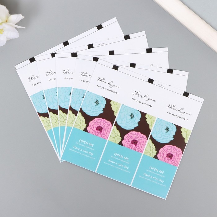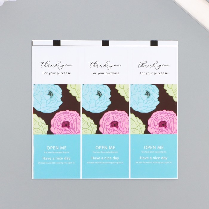 Наклейка бумага благодарность "Пионы" набор 50 шт 9х3 см