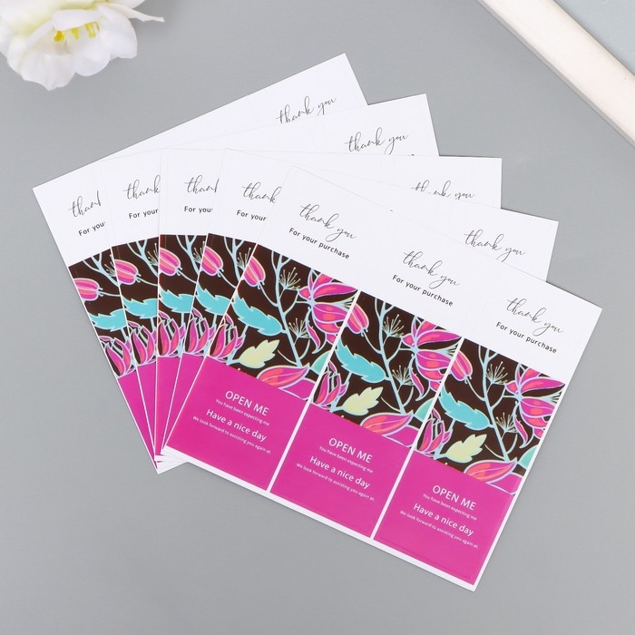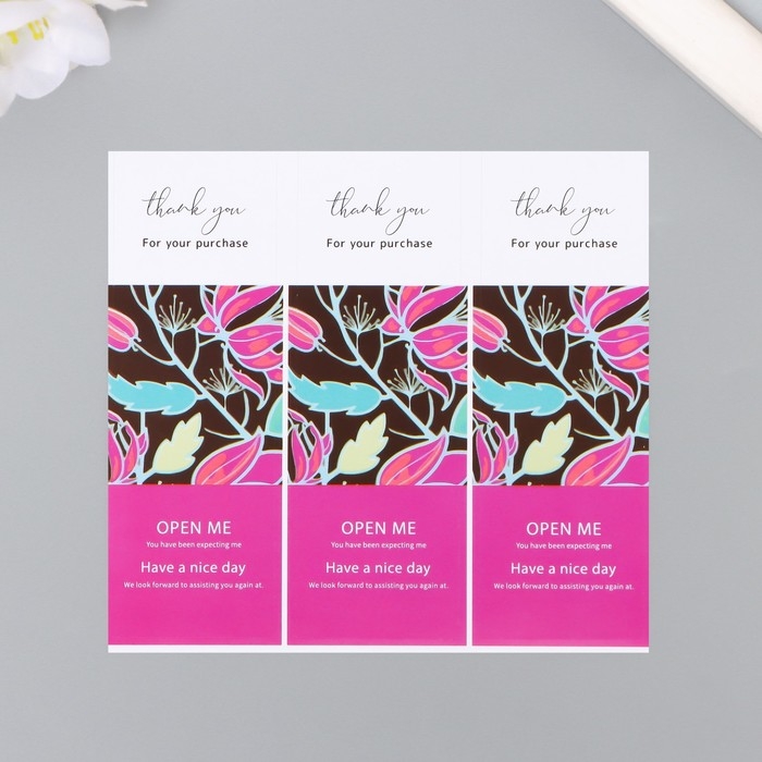 Наклейка бумага благодарность "Листья" набор 50 шт 9х3 см