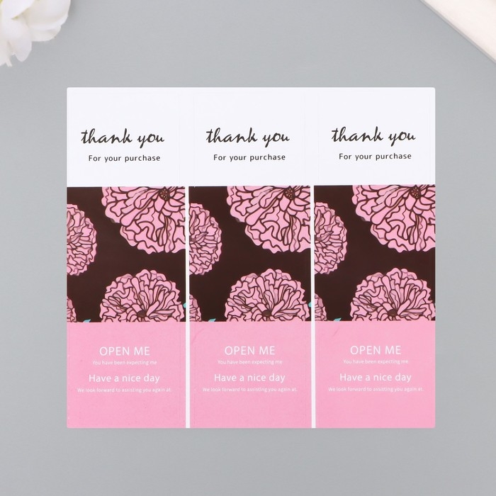 Наклейка бумага благодарность "Бутоны" набор 50 шт 9х3 см