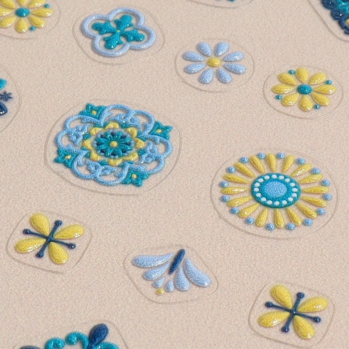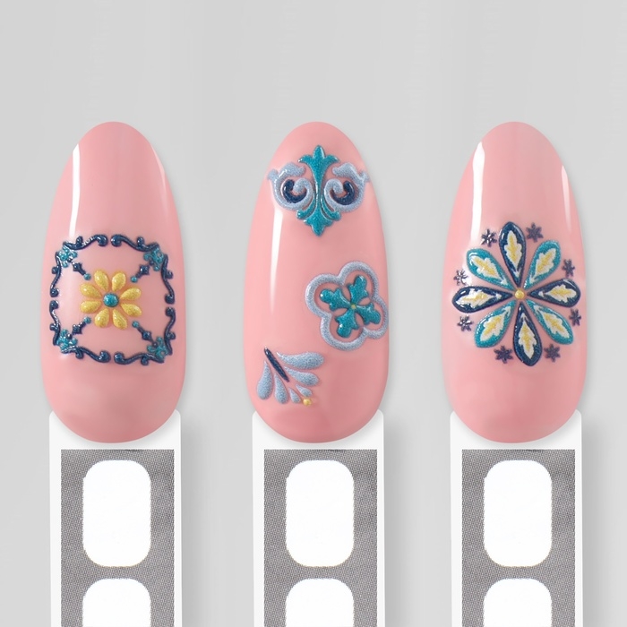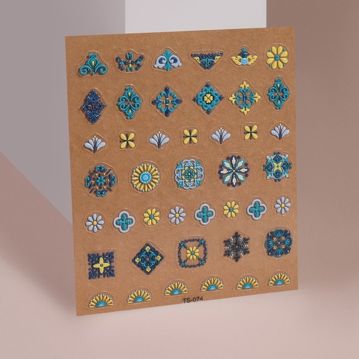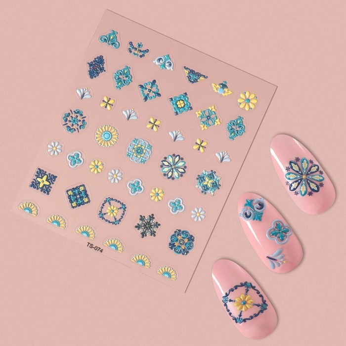 Наклейки для ногтей «Витраж», объёмные, цвет голубой/жёлтый/зелёный