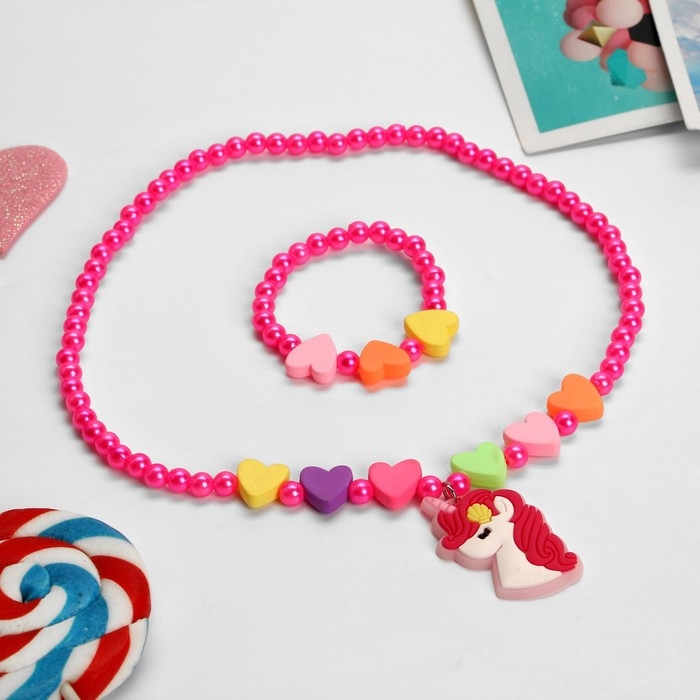 Набор детский «Выбражулька» 2 предмета: кулон, браслет, единорог, цветной