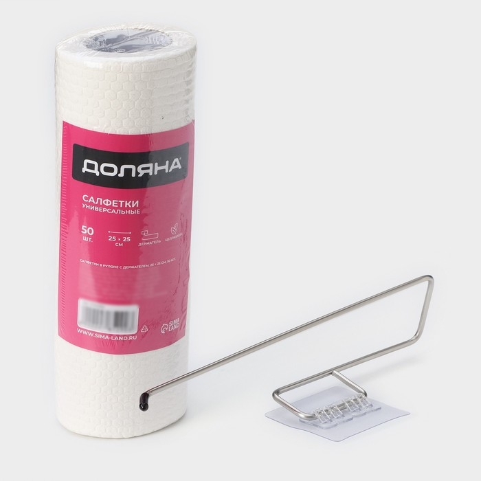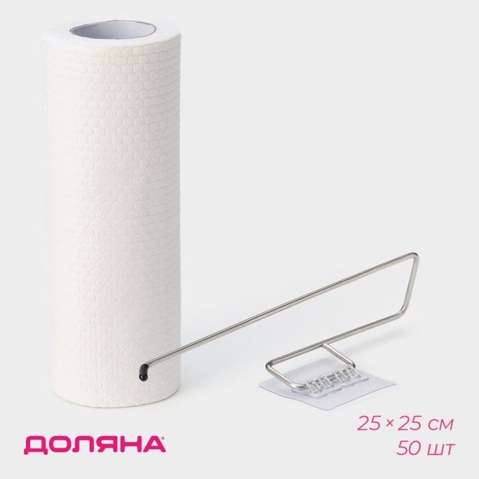 Салфетки в рулоне многоразовые безворсовые в наборе с держателем Доляна, 50 шт, 25×25 см, цвет белый