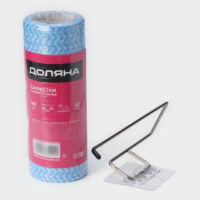 Салфетки в рулоне многоразовые безворсовые в наборе с держателем Доляна, 40 шт, 20×20 см, цвет голубой