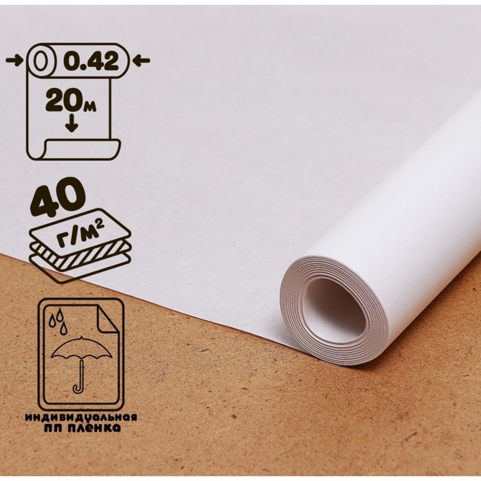 Калька чертёжная под карандаш, ширина 420 мм, в рулоне 20 метров, 40 г/м², в ПП плёнке