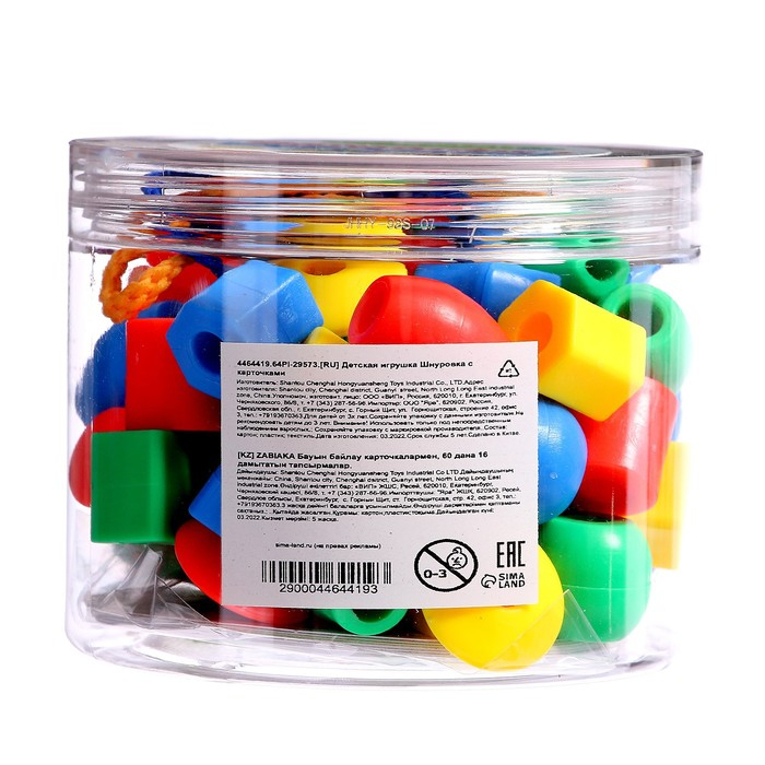 Шнуровка с карточками 60 шт., 16 развивающих заданий, по методике Монтессори