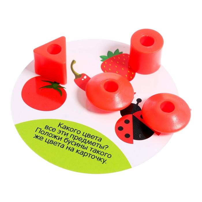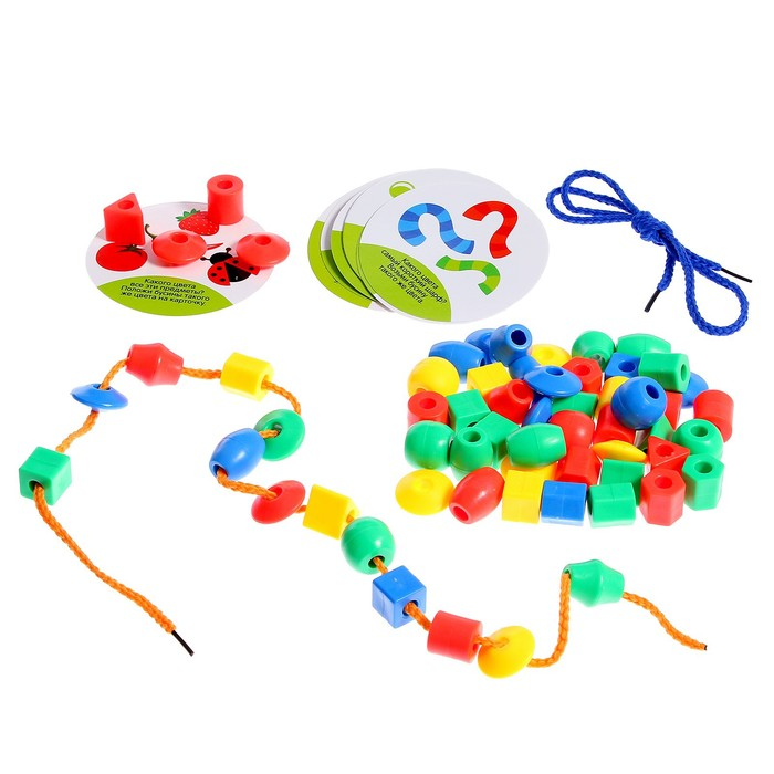 Шнуровки — увлекательный способ развития мелкой моторики и усидчивости ребёнка. Задача малыша: нанизывать элементы на шнурок в определённой последовательности. Такая игра научит различать цвета и формы предметов.