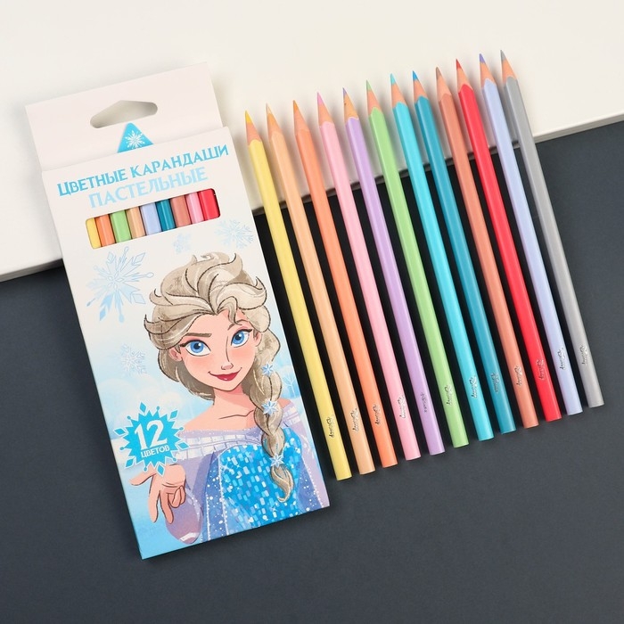 Цветные карандаши пастельные, 12 цветов, трехгранные, Холодное сердце