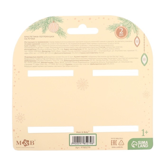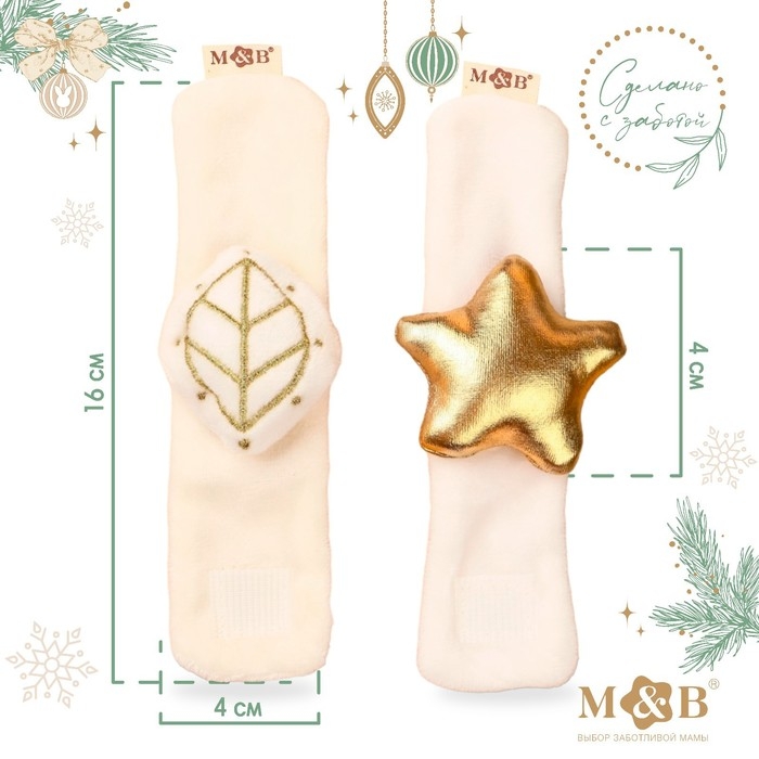 Браслетик-погремушка «Листик и звездочка» , 2 шт., Mum&Baby