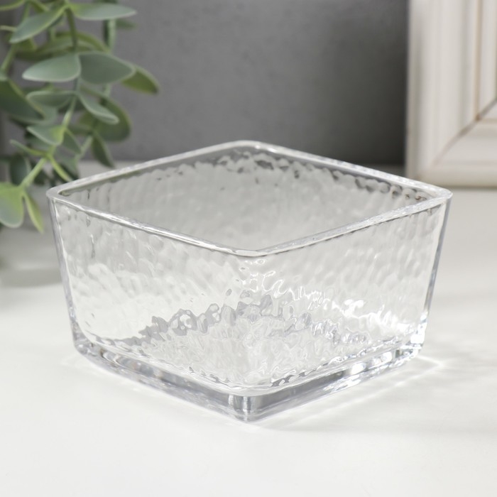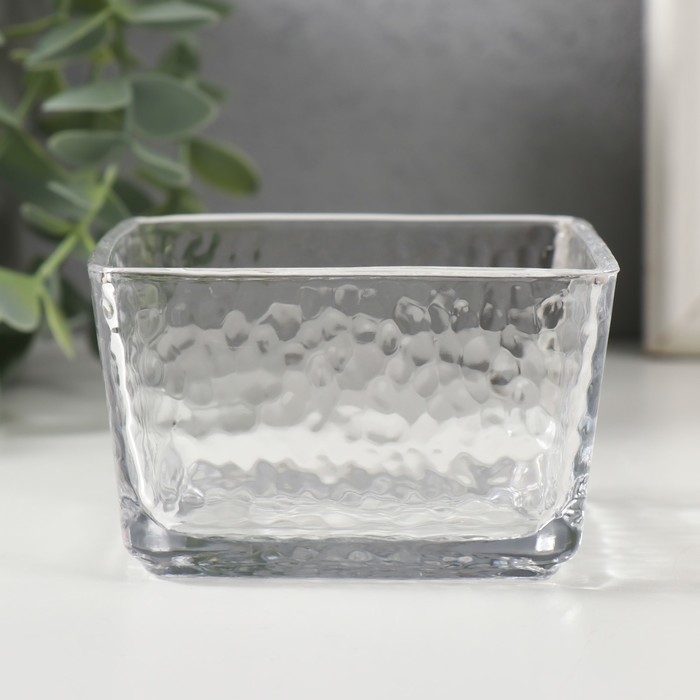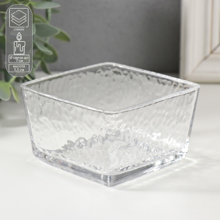 Подсвечник стекло на 1 свечу "Мятый квадрат" прозрачный 9х9х5,5 см