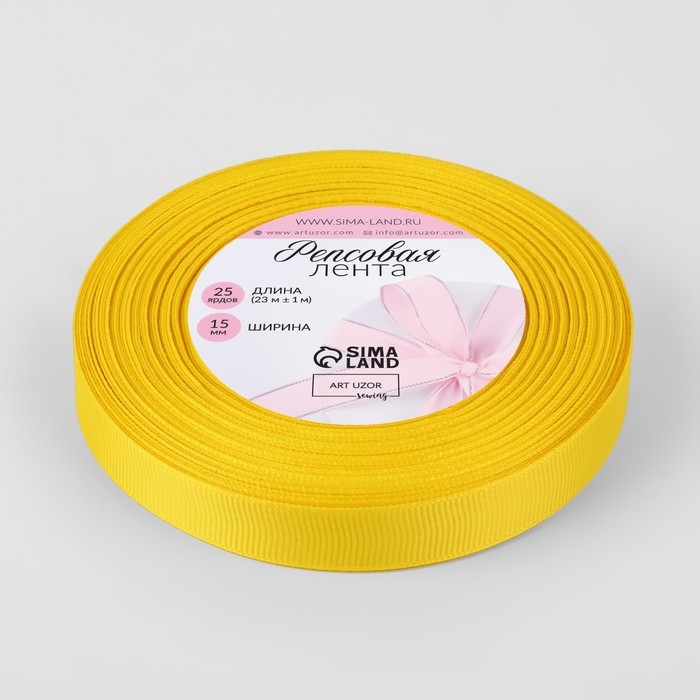 Лента репсовая, 15 мм, 23 ± 1 м, цвет жёлтый №15