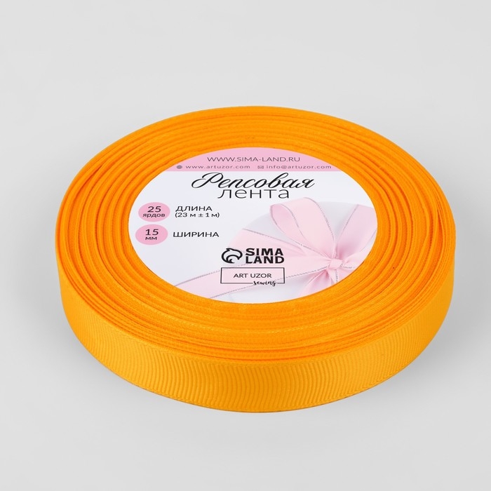 Лента репсовая, 15 мм, 23 ± 1 м, цвет жёлтый №85