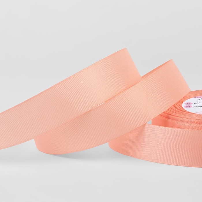 Лента репсовая, 25 мм, 23 ± 1 м, цвет розовый персик №0176
